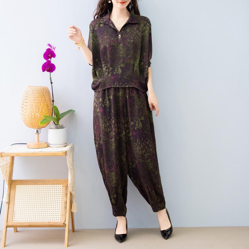 Женский комплект из полосатой футболки и джоггеров большого размера в этническом стиле для мам среднего возраста XL (Fits 100-120 lbs)