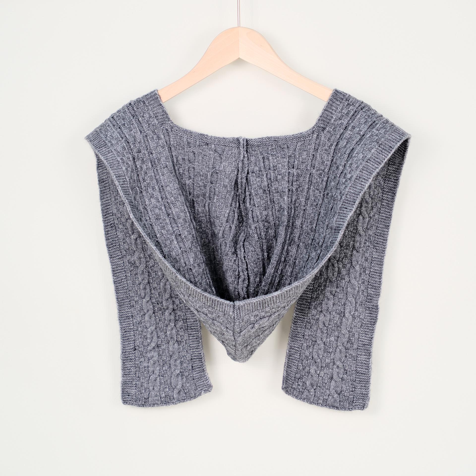 Женский корейский вязаный жилет-шаль с капюшоном - Повседневная однотонная многослойная верхняя одежда серый