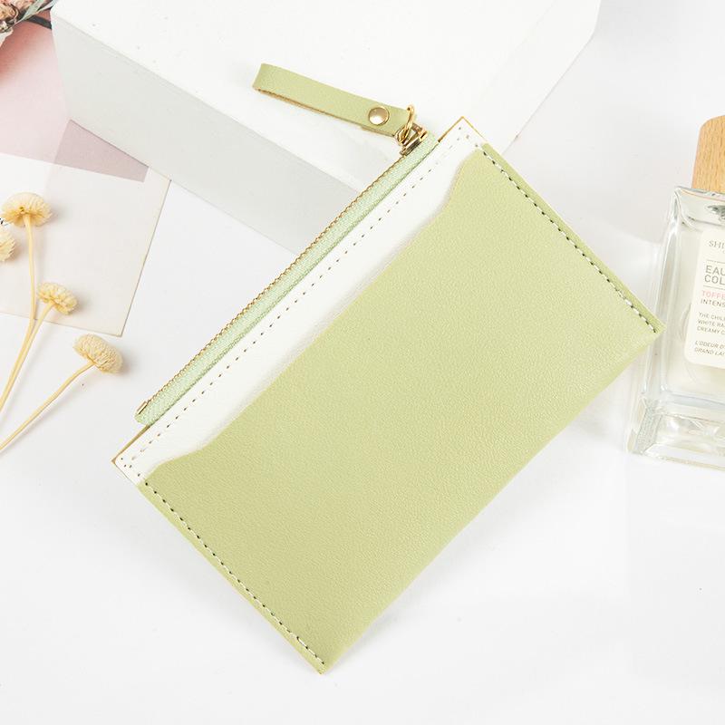 Женский кошелек для монет на молнии, новинка 2025 года, держатель для карт из искусственной кожи с цветными блоками зелёный