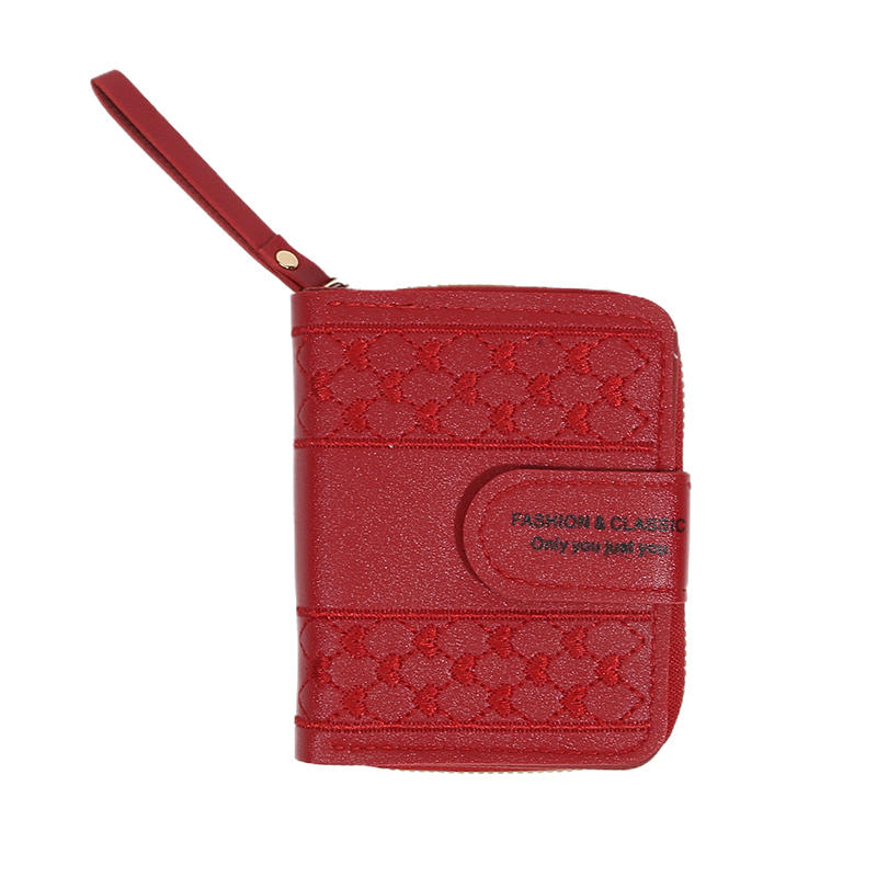 Женский кошелек короткий на молнии большой вместимости кошелек для мелочи универсальная сумочка держатель для карт One size красный