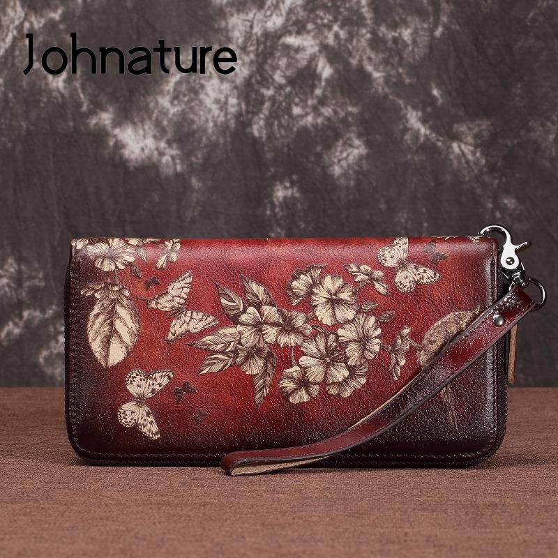 Женский кошелек Johnature из натуральной кожи с принтом в стиле ретро, длинные кошельки для отдыха, кошелек для телефона, мягкая сумка из воловьей кожи