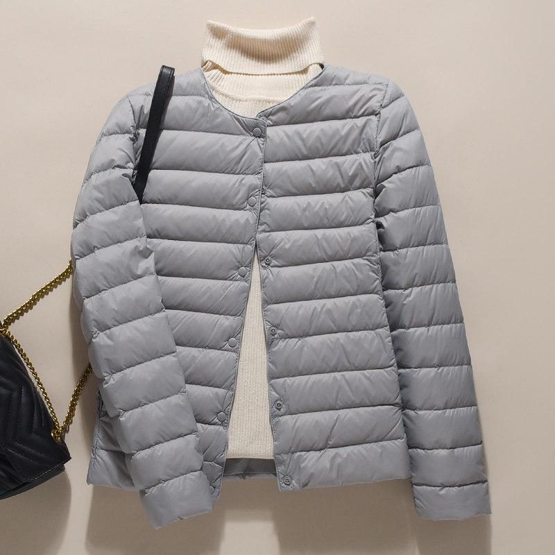 Женский легкий пуховик 2024, короткий, с круглым V-образным вырезом, теплый, без воротника, приталенный, большого размера, пальто на осень/зиму M