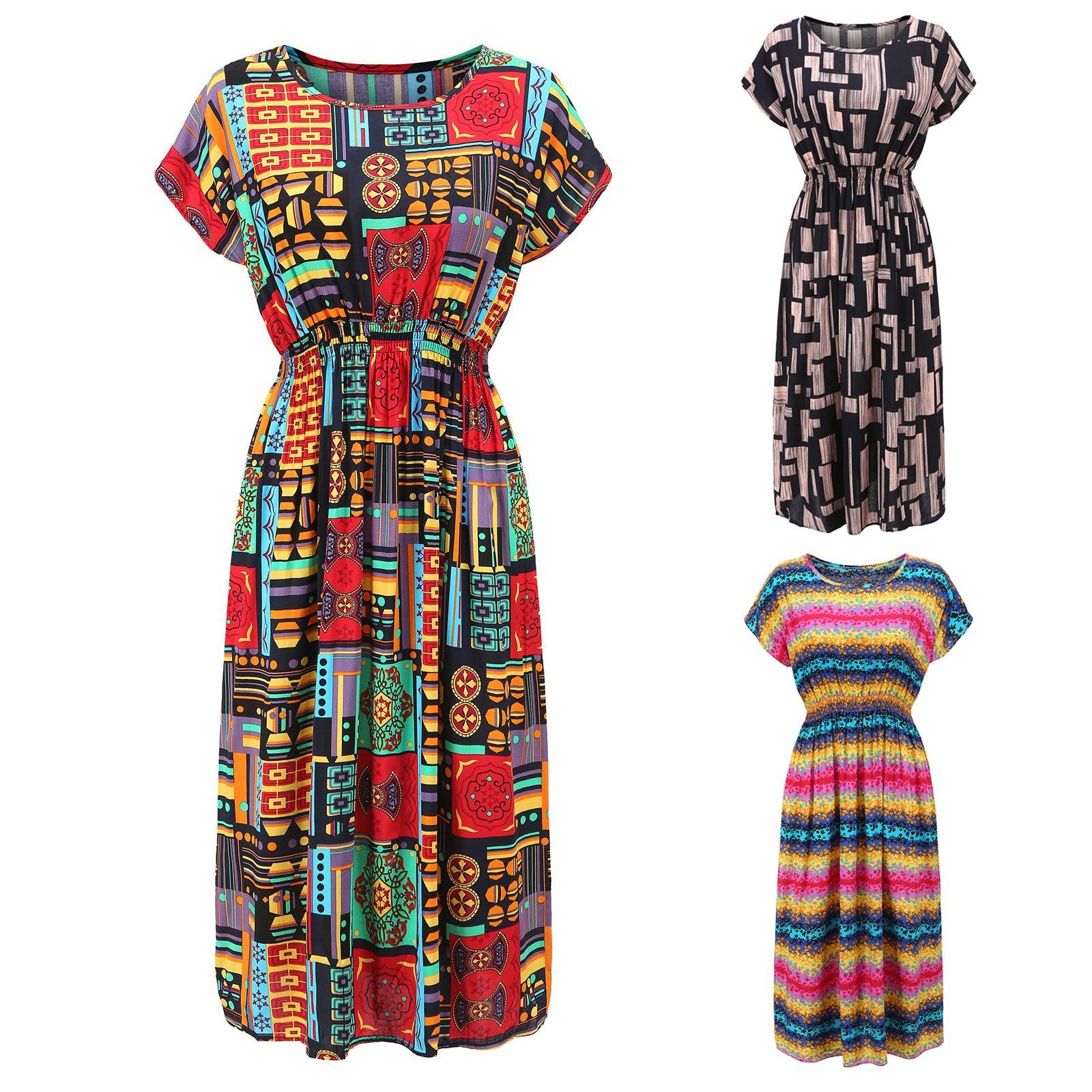 Женский летний богемный принт с принтом в стиле ретро, большие размеры, длинный