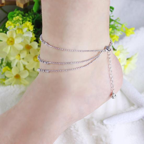 Женский летний пляжный 3-рядный браслет со стразами, браслет-цепочка на щиколотке, украшения для ног