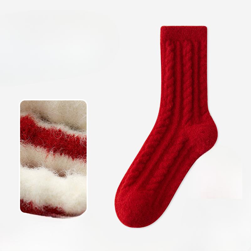Женский осенне-зимний стиль Толстая полоска Тканевая марка Новый год в этом году Свадьба Труба Большие красные носки 1 pair