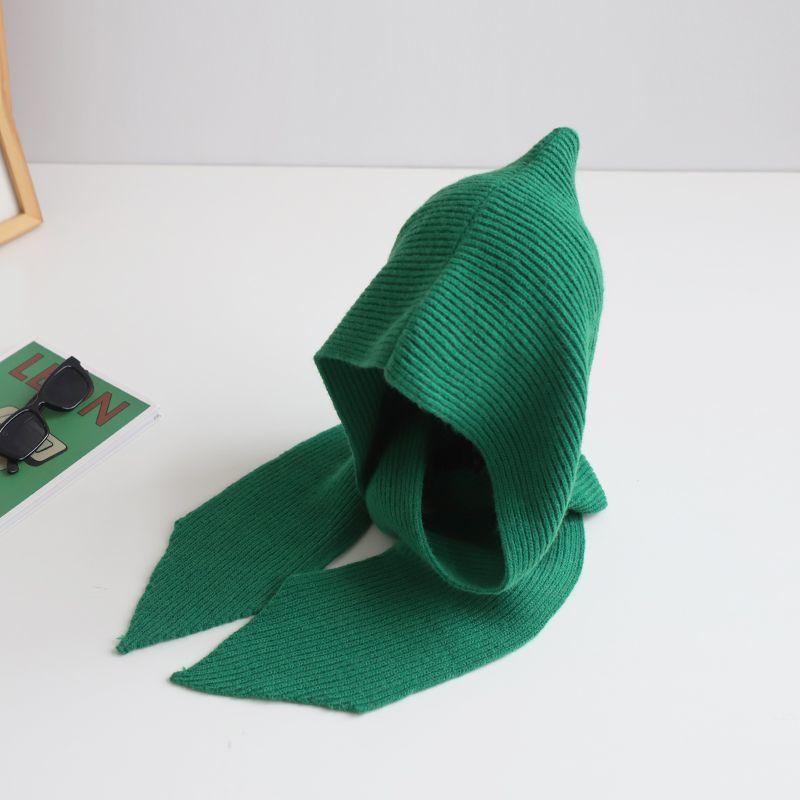 Женский осенне-зимний теплый вязаный шерстяной шарф-шаль в корейском стиле, шапка, интегрированное украшение, незаменимый аксессуар для сочетания с пальто зелёный