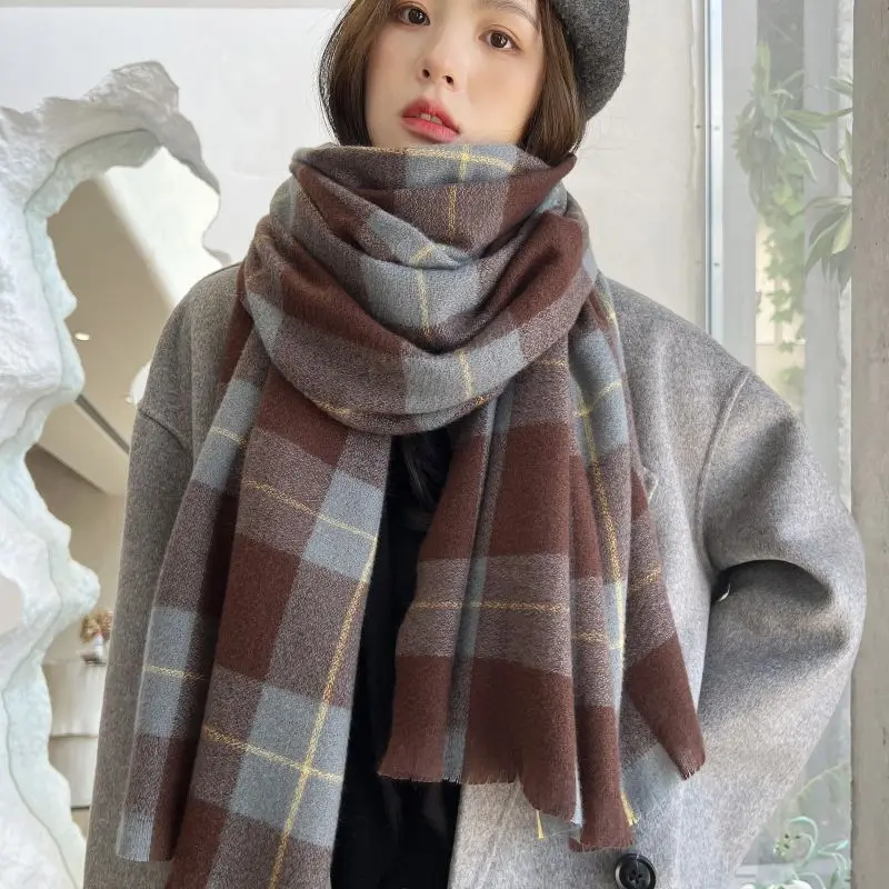 Женский осенне-зимний шарф, кашемировый шарф на ощупь, на весну и осень, большое одеяло, Классическая клетчатая шаль, мягкая теплая накидка