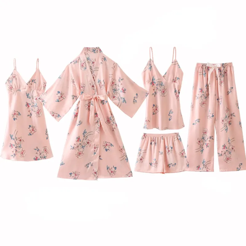 Женский пижамный комплект PJS, мягкая Пижама, пикантный комплект с принтом в горошек, ночная рубашка, атласная Домашняя одежда, домашнее бель...