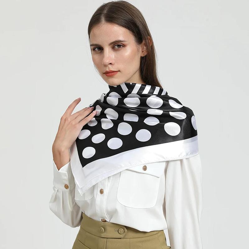 Женский платок, шелковый атласный шарф, повязка для волос, квадратные шали, хиджаб, модная черная, белая повязка на голову