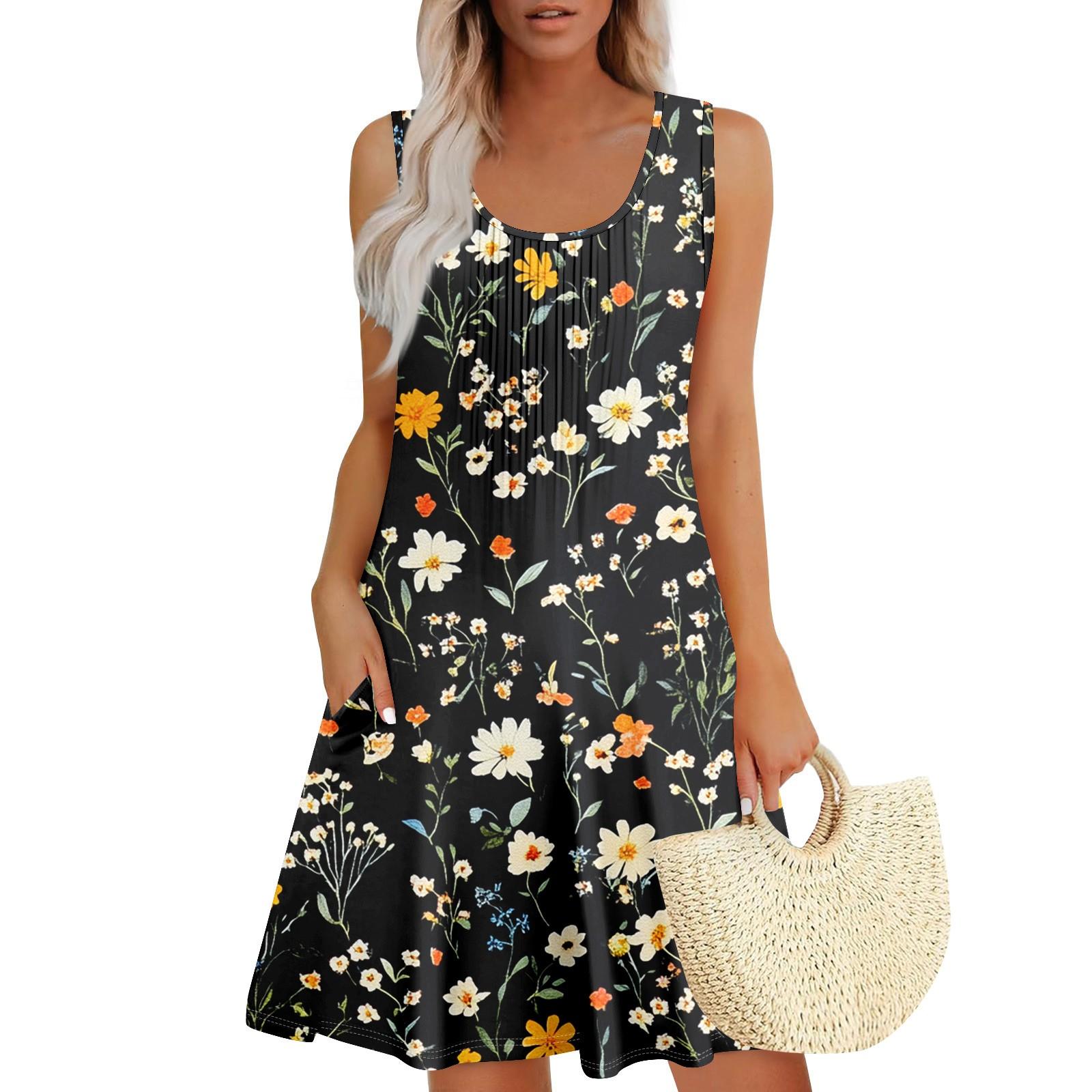 Женский повседневный сарафан с карманами, летнее пляжное платье в стиле бохо, праздничное платье для женщин, платья-майки L чёрный