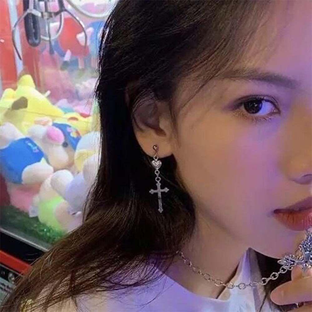 Женский подарок Элегантная Любовь Сердце Крест Серьга Крючок Ушной Крючок Корейские Серьги-Кольца Женские Серьги-Гвоздики