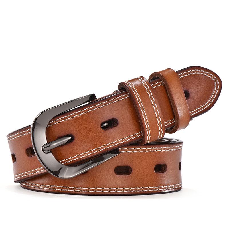 Женский ремень из натуральной кожи с полым узором и пряжкой-пином - Ретро перфорированный пояс из коровьей кожи 110 cm