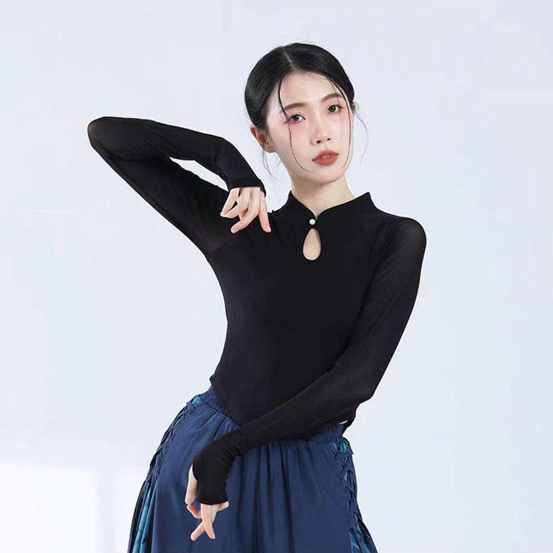 Женский ретро-шик топ с длинным рукавом для йоги и танцев - облегающий крой, китайский стиль Extra Large