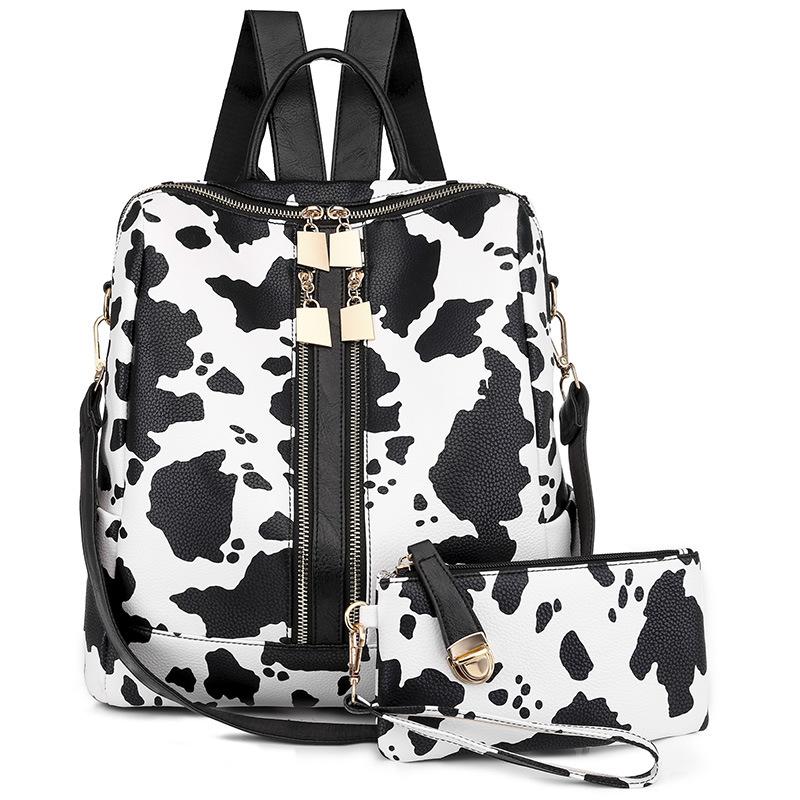 Женский рюкзак большой емкости, кошельки, модная сумка с леопардовым принтом и несколькими молниями, дорожная сумка-рюкзак, съемный плечевой ремень, сумка через плечо белый