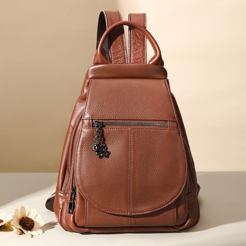 Женский рюкзак из натуральной кожи, универсальный для поездок на работу, повседневная сумка через плечо с клапаном One Size коричневый