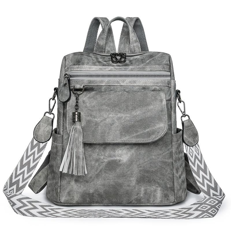 Женский рюкзак-кошелек в стиле ретро - синтетическая кожа, магнитная застежка, съемные ремни, кисточки, коричневый/серый джинсовый стиль, универсальная сумка через плечо серый