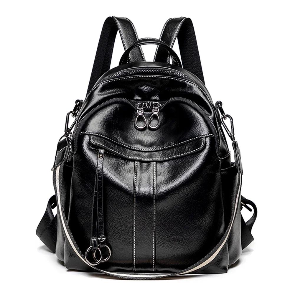 Женский рюкзак, мягкая высококачественная сумка через плечо из воловьей кожи, рюкзак из натуральной кожи, маленькая модная сумка на молнии S чёрный