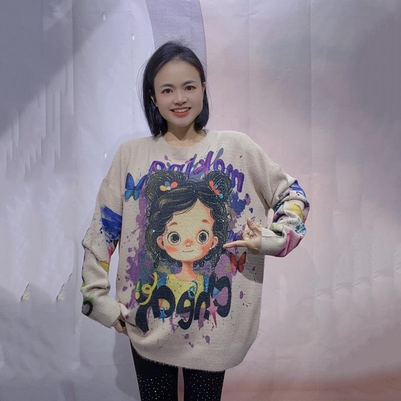 Женский свитер большого размера повышенной прочности - Топ с круглым вырезом на осень/зиму 2024 One Size