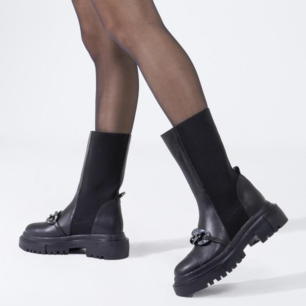 Женский стиль, сапоги из натуральной кожи, эластичная зимняя обувь на толстой подошве