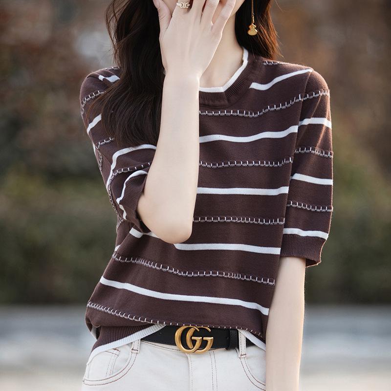 Женский топ большого размера с черно-белой полоской, цветной блок, рукав до локтя XL кофейный