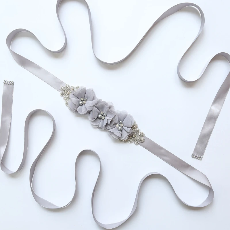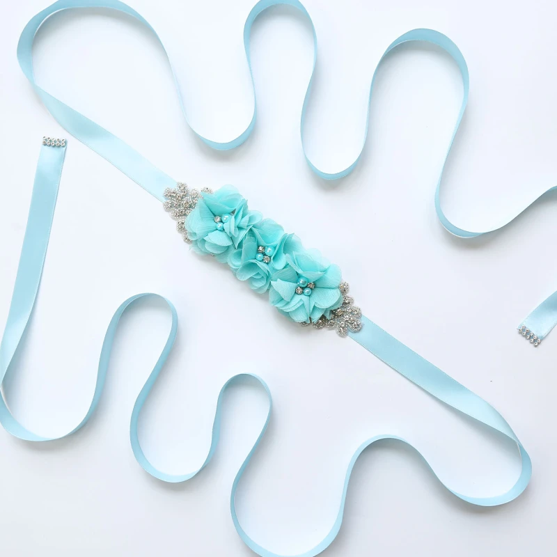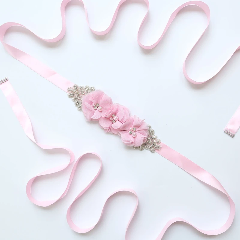 Женский узкий пояс с тремя цветочными ремнями Стразы с жемчужной шифоновой лентой с дикими жемчужинами цветочный ремень для вечернего плат...