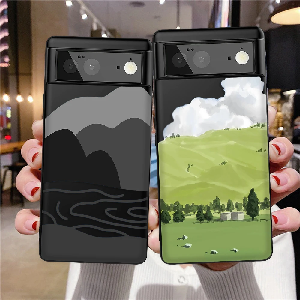 Cartoon Grassland Phone Case For Google Pixel 7a 7Pro 7 6a 6 6Pro 5 5a 4a 5G 4XL 4 3XL 3 3a XL Luxury Black Cases Soft TPU Cover