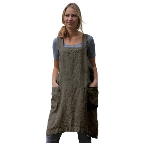 Женский хлопковый льняной фартук без рукавов для домашней кухни, чистящее платье для флориста M армия зеленый