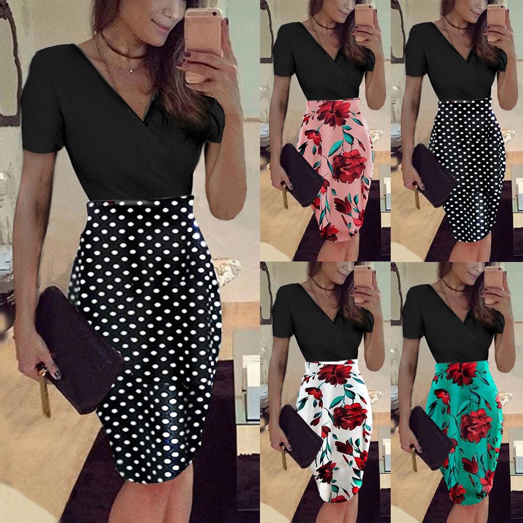 Женский цветочный принт с коротким рукавом V-образным вырезом Вечерняя вечеринка Короткое платье