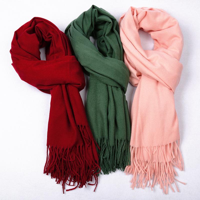 Женский шарф шаль зима теплые однотонные кисточки утолщенные модные аксессуары