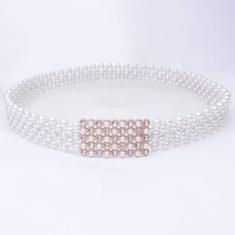 Женский эластичный летний ремень со стразами, тонкая жемчужная поясная цепочка, женский милый декоративный широкий пояс для платья 60-80cm