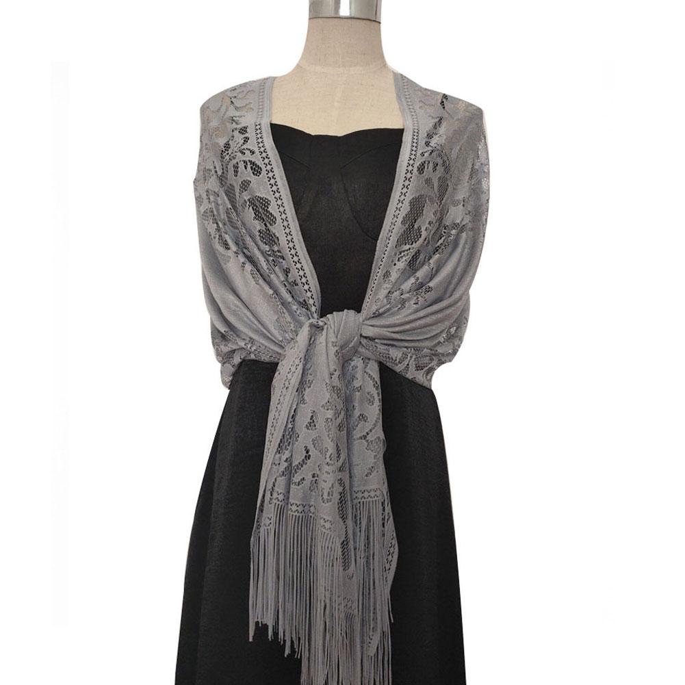 Женский элегантный свадебный шаль с кисточками, женский чистый цвет, полая кружевная сетчатая пряжа, темпераментный вечерний шарф серый