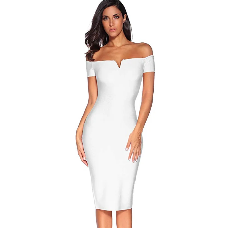 Женское Бандажное платье, элегантное сексуальное облегающее платье без бретелек с открытыми плечами, летние Клубные Вечерние платья подру...