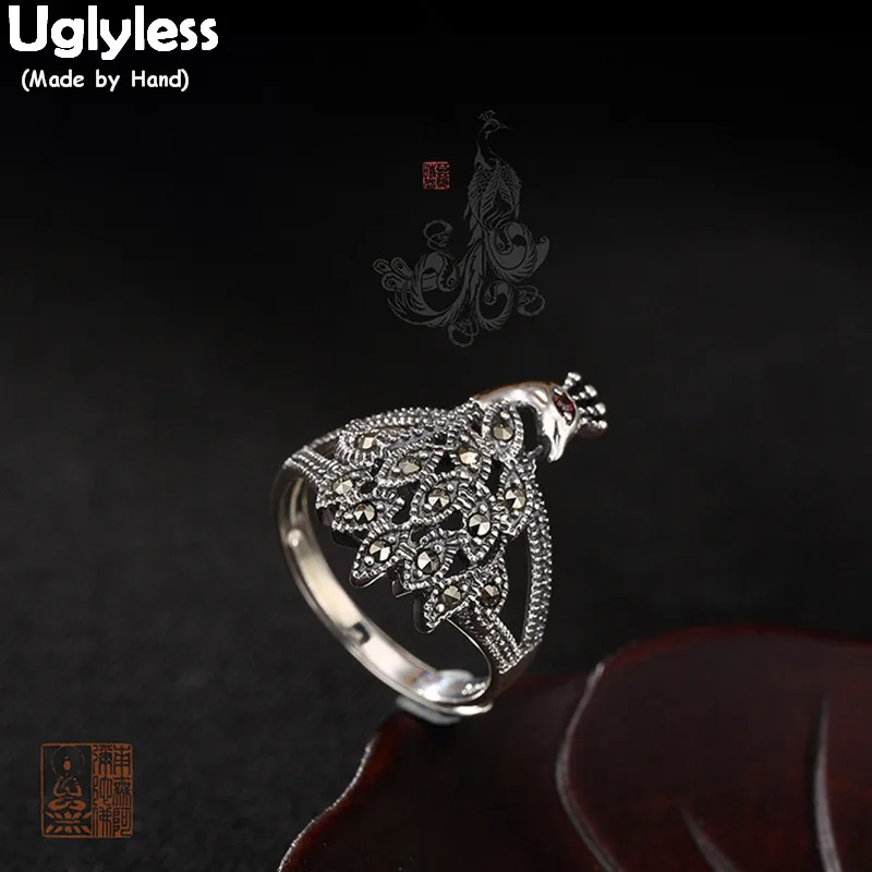 Женское Винтажное кольцо с павлином, на пальцах, с неглицей, в этническом стиле, из настоящего серебра, ручной работы, в форме марказита