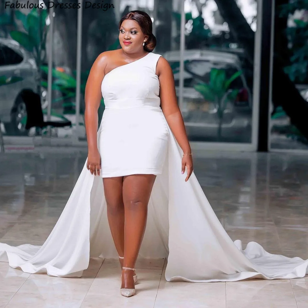 Женское Короткое платье-русалка, белое вечернее платье мини на одно плечо со шлейфом, коктейльное платье для выпускного вечера, 2023