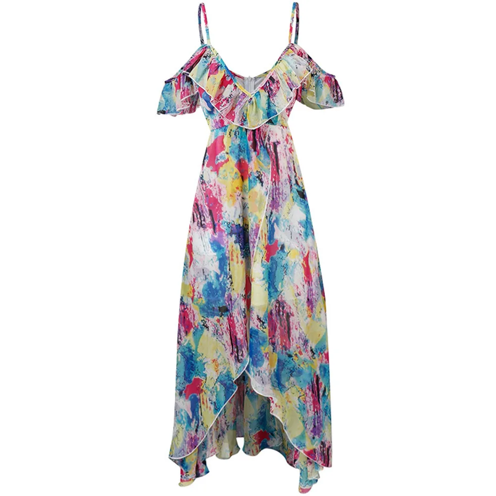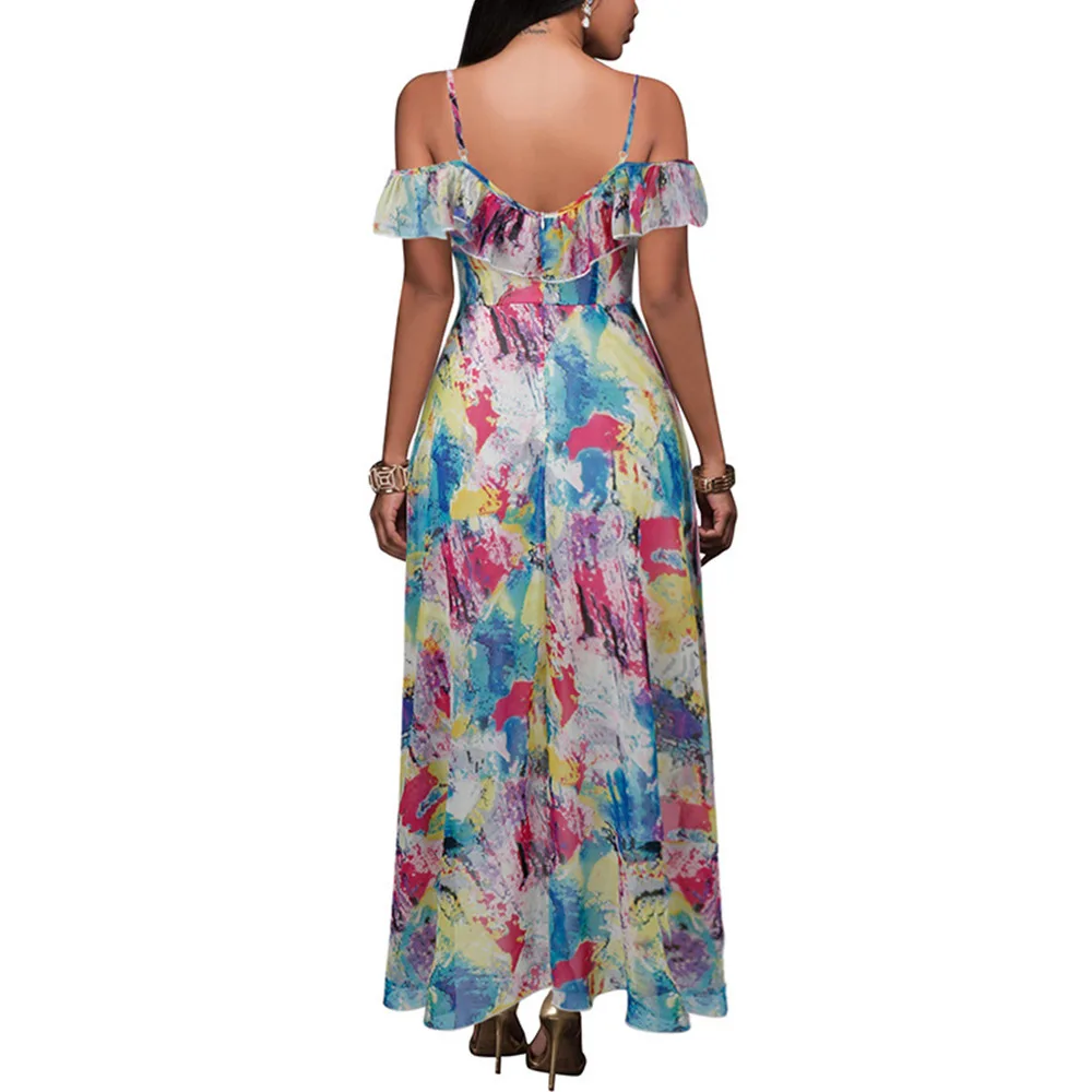 Женское Летнее нарядное платье с цветочным принтом в стиле «Бохо шифоновые платья с открытыми плечами длинное пляжное платье вечерние праздничные Клубные платья Открытое платье без рукавов размера плюс 3XL