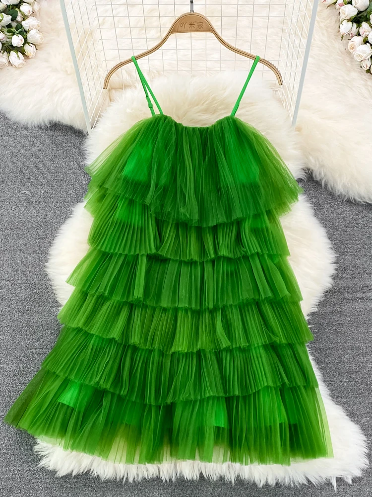 Женское Сетчатое мини-платье с каскадными оборками, фиолетовое/зеленое/розовое ТРАПЕЦИЕВИДНОЕ платье без рукавов, Пляжное Платье для отпус...