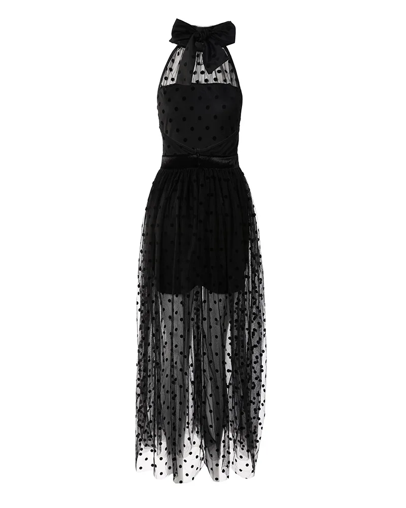 Женское Сетчатое платье в горошек, черное платье-трапеция без рукавов, с лямкой на шее, высокой талией, для ночного клуба вечерние, на весну и...