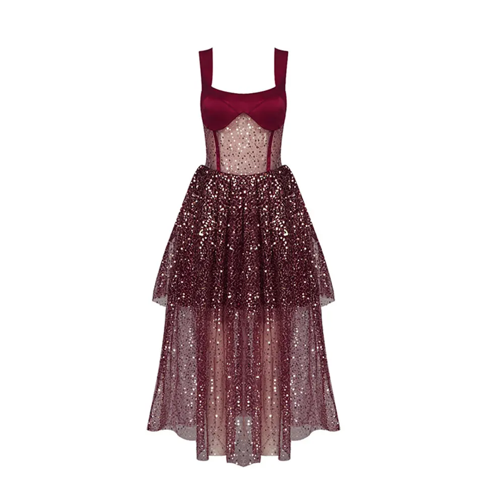 Женское Сетчатое платье на бретелях, красное, черное платье с блестками на талии для ночного клуба и вечерние, модель 2021 на лето