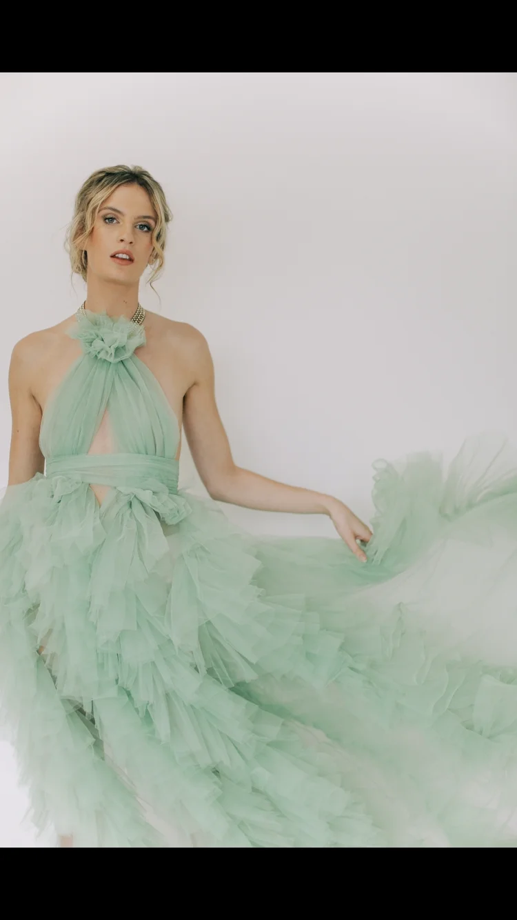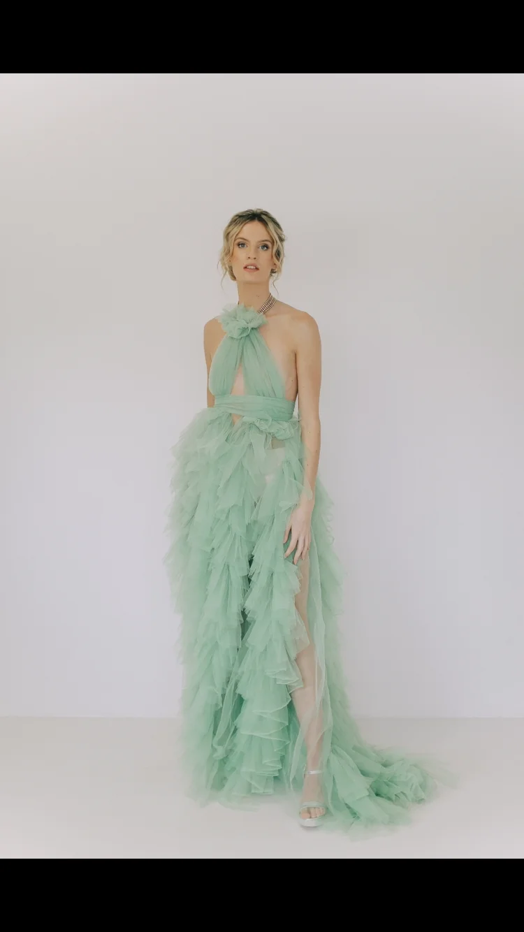 Женское Тюлевое платье с рюшами Pretty, длинное летнее пляжное платье с лямкой на шее и оборками, зеленое Мятное иллюзийное платье для вечеринок