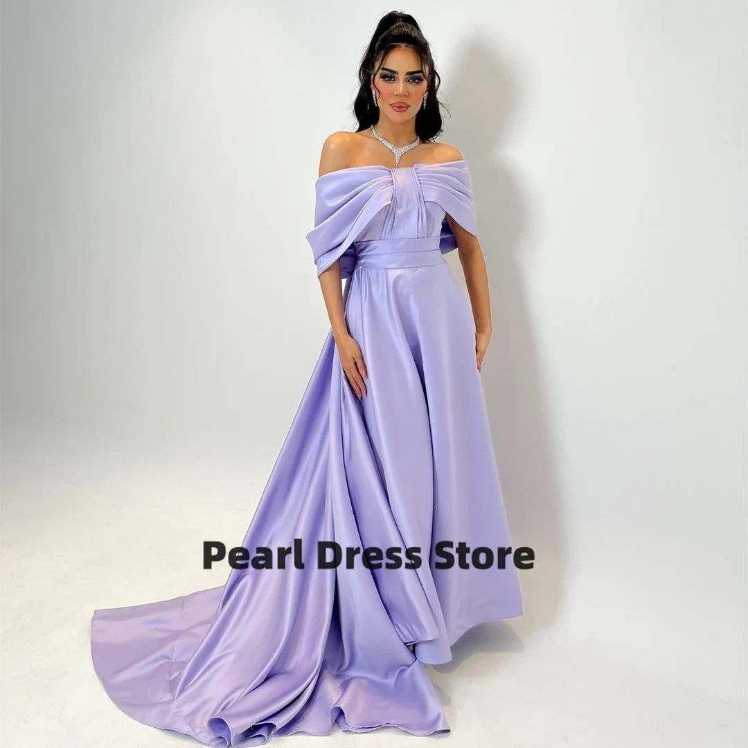 Женское атласное вечернее платье с открытыми плечами, длинное Плиссированное фиолетовое платье с юбкой-годе в ретро стиле