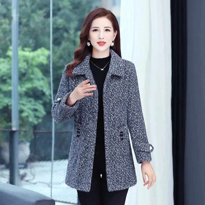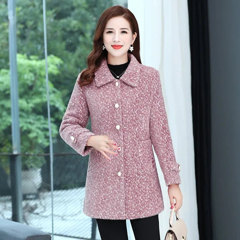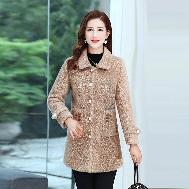 Женское бархатное пальто из меха норки, осенне-зимняя приталенная элегантная шерстяная куртка средней длины, плотное теплое Женское шерстяное пальто, 2024