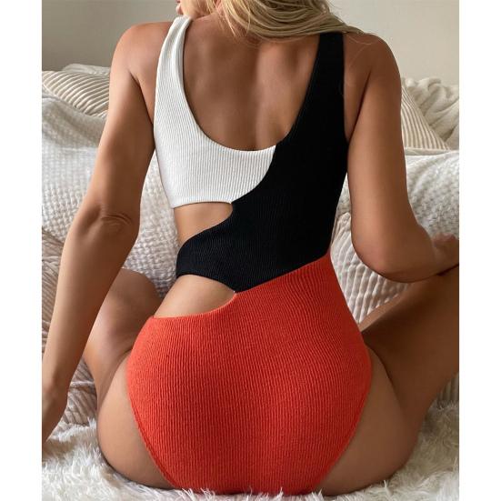 Женское бикини контрастного цвета с открытыми плечами, цельный сексуальный купальник для пляжа