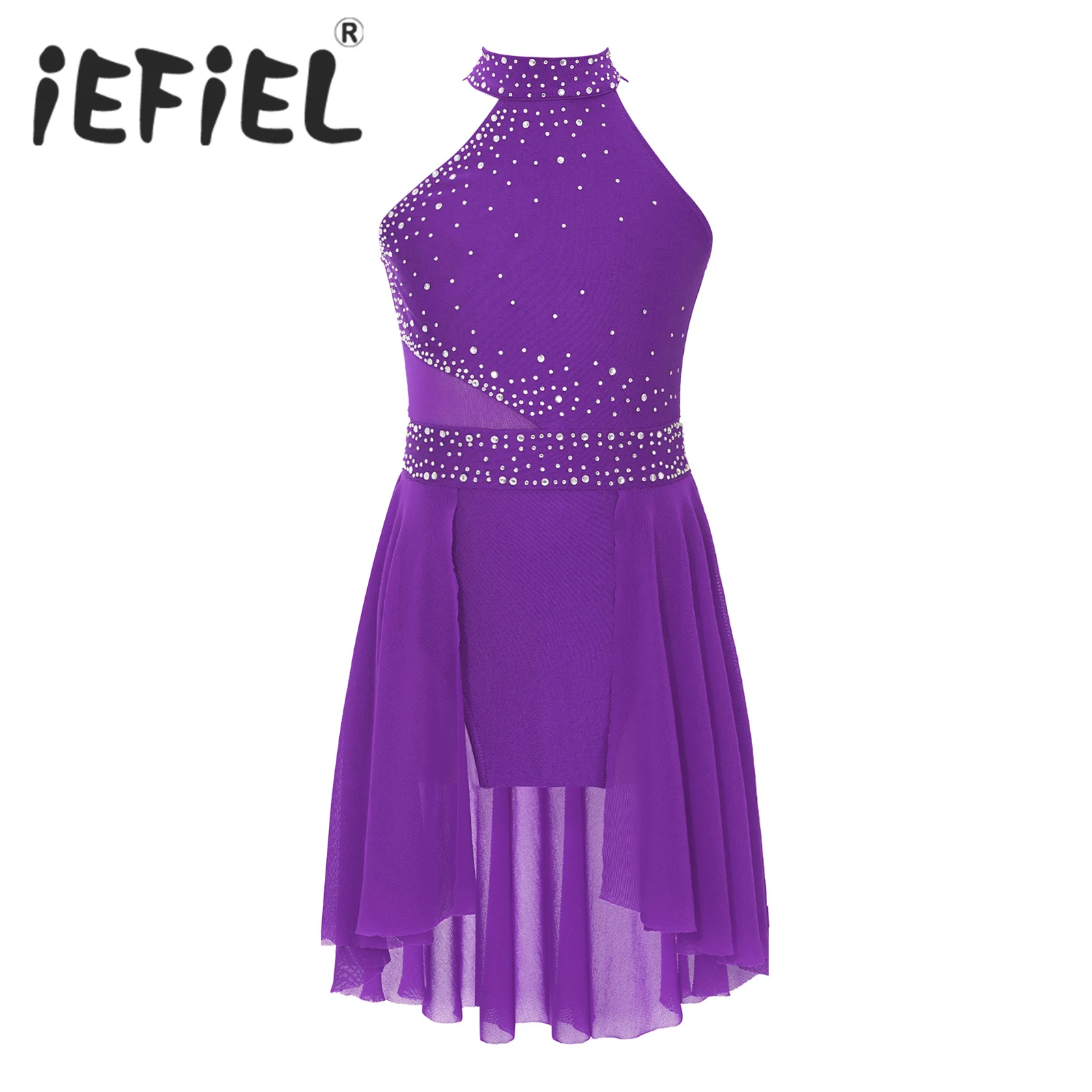 Женское блестящее платье для танцев, необычное платье без рукавов с асимметричным подолом, Костюм Балерины для выступления на сцене