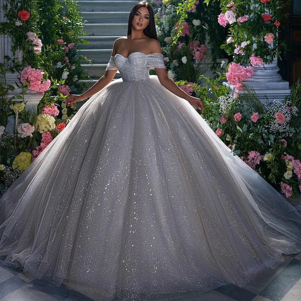 Женское блестящее свадебное платье It's yiiya, белое фатиновое платье с открытыми плечами и блестками в богемном стиле на лето 2023