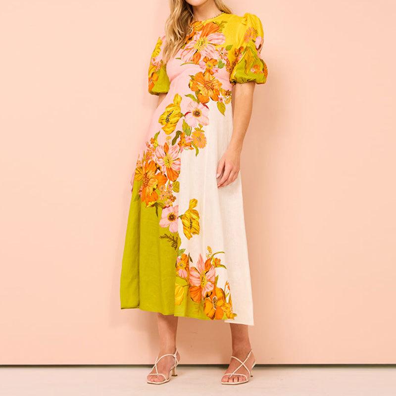 Женское весеннее платье нового стиля в этническом стиле с принтом, модное, с рукавами-буфами, приталенного силуэта S