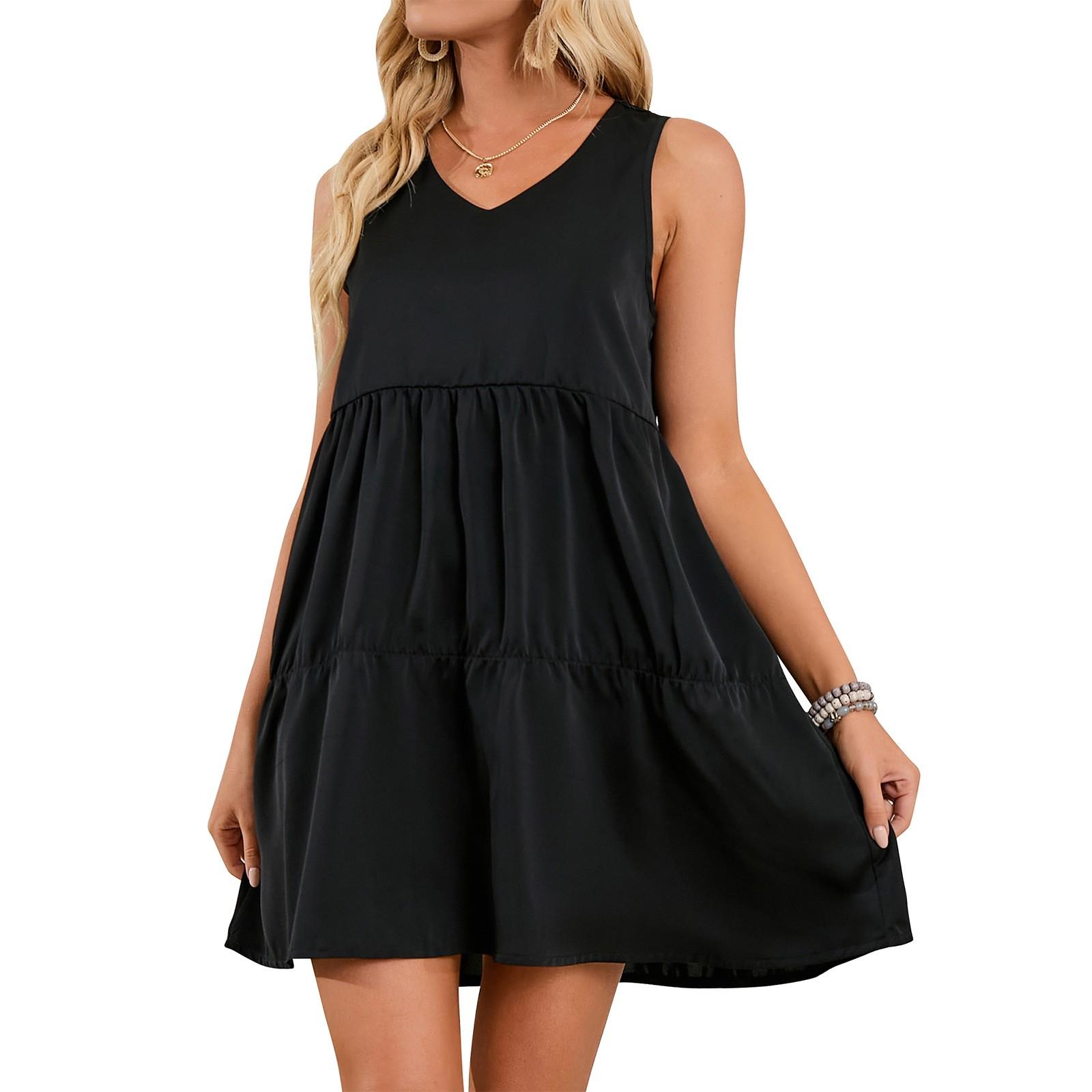 Женское весенне-летнее однотонное платье без рукавов с v-образным вырезом и плечами S чёрный