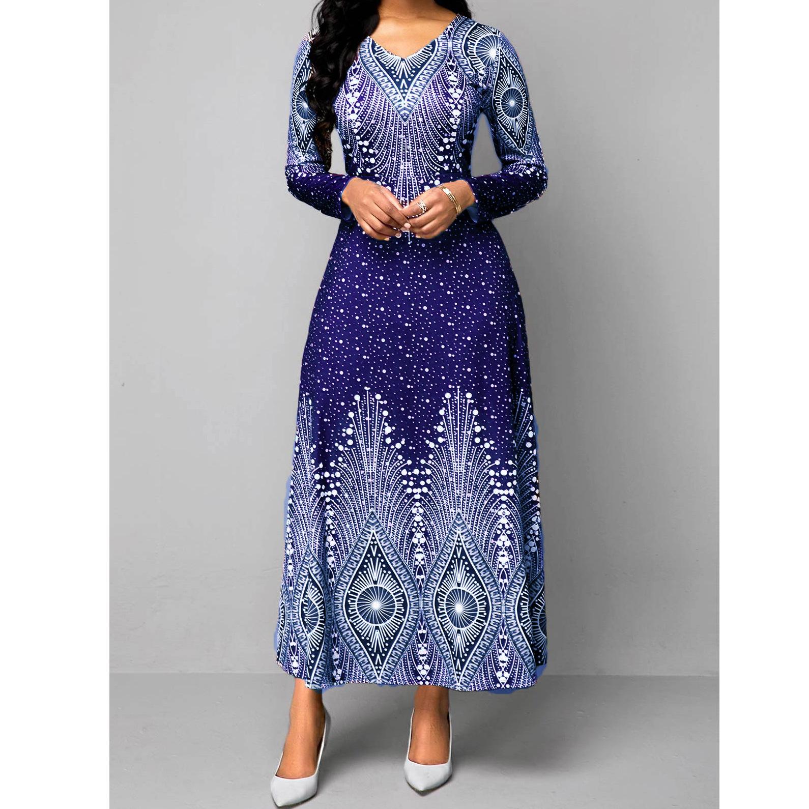 Женское весенне-осеннее новое модное тонкое вечернее платье с v-образным вырезом в стиле ретро, элегантное длинное платье больших размеров L синий