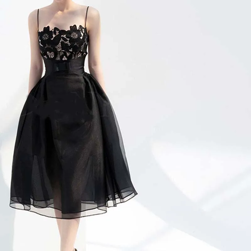 Женское вечернее платье без бретелек, черное ТРАПЕЦИЕВИДНОЕ ПЛАТЬЕ с аппликацией, элегантное плиссированное платье до середины икры, модель A2523