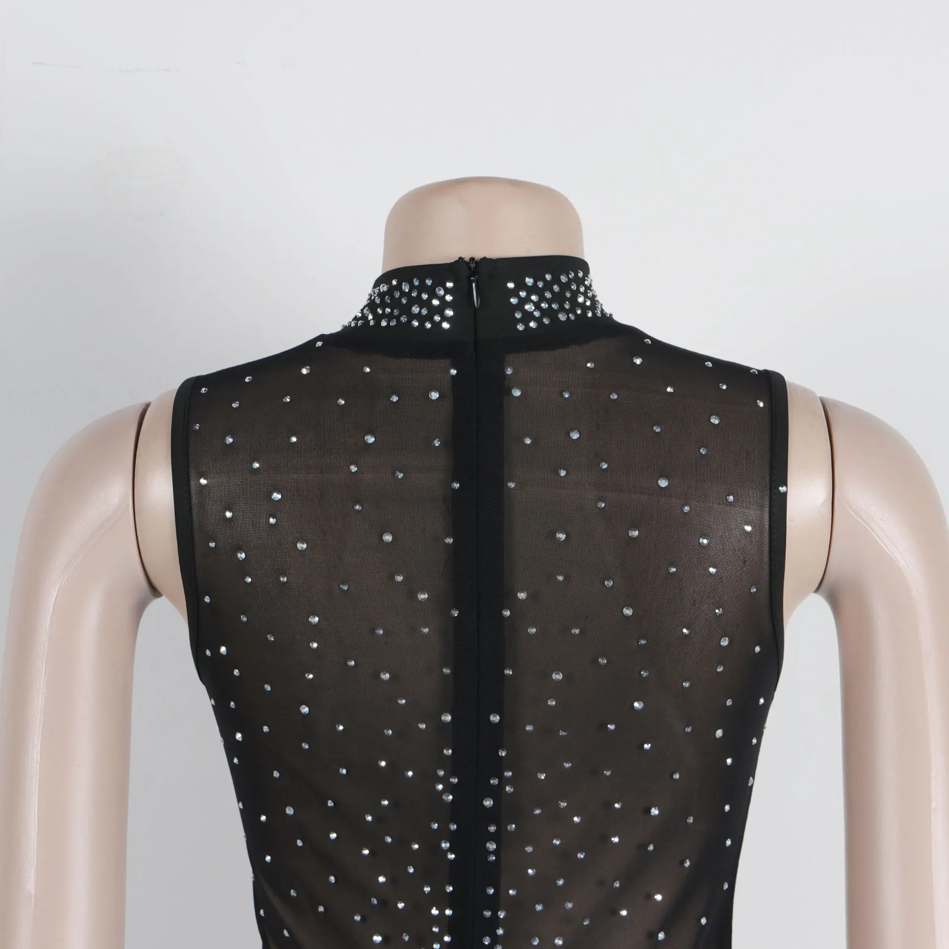 Женское вечернее платье до пола, черное прозрачное Тюлевое платье с ложным воротником без рукавов, со стразами и высокой талией для вечеринки