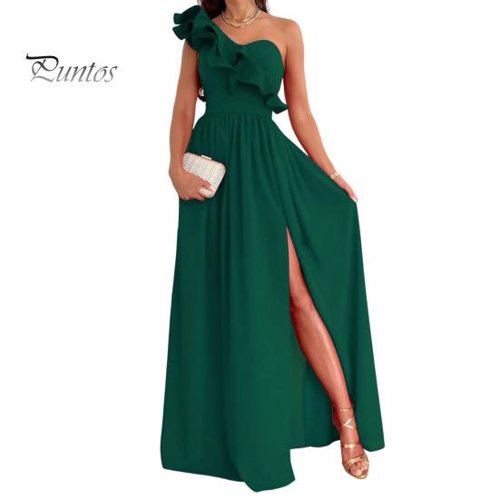 Женское вечернее платье на одно плечо без рукавов с разрезом по низу, однотонное, с оборками, плиссированное, однотонное, с открытыми плечами, коктейльное, вечернее, макси-платье, бальное платье S зелёный
